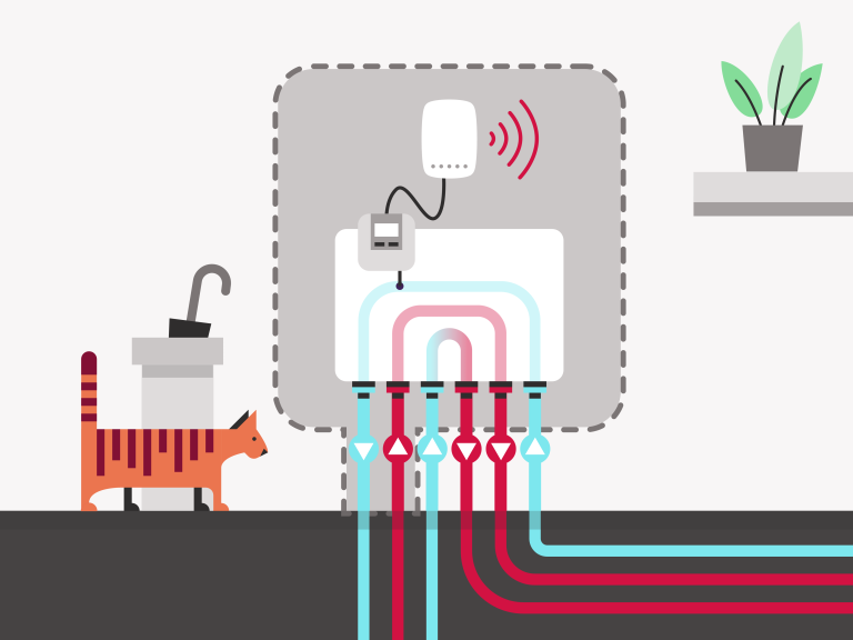 C: De slimme warmte module registreert je verbruik en geeft het door aan ons.