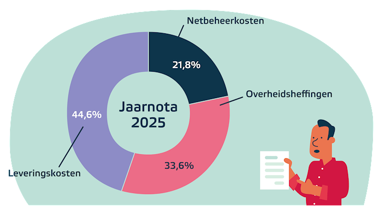 Je energietarief bestaat uit drie onderdelen. De leveringskosten, de netbeheerkosten en overheidsheffingen.