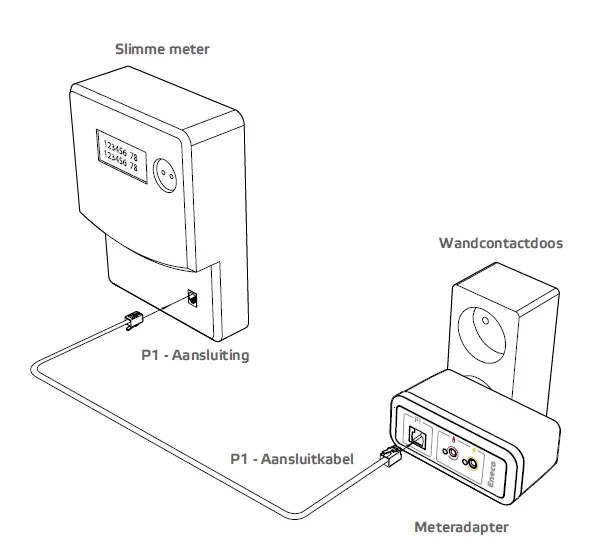 - Steek de P1-kabel in de meteradapter.